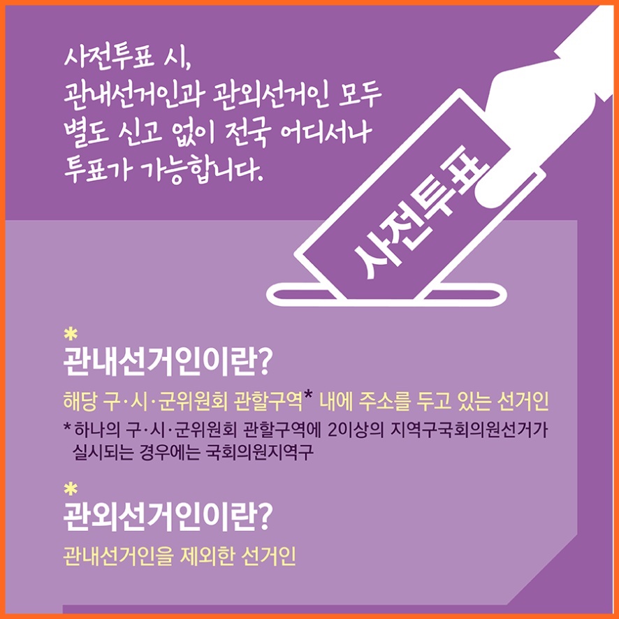 사전 투표는 누구든지 전국 어디서나 투표가 가능합니다.